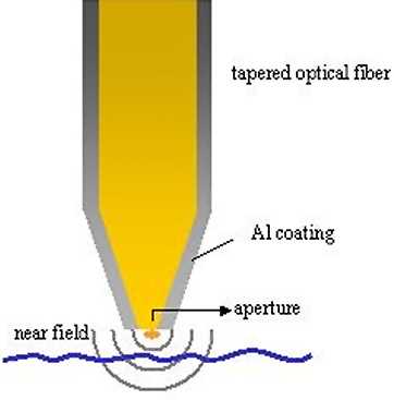 最直接的近場光學量測方式,即是使用已鍍上鋁金屬薄膜的光纖孔穴探針作為光學訊號接收器。然而,如何達到控制探針與樣品保持在近場(near field)的偵測區域內,即是保持探針與樣品的距離,對近場光學而言,是非常重要的。目前最常使用的方式為剪力式(shear force mode)的迴饋方式(利用石英音叉之振幅在靠近樣品表時所造成的振幅衰減變化)。所以,可以同時取得樣品表面的形貌(AFM)與近場光學訊號 (NSOM)。