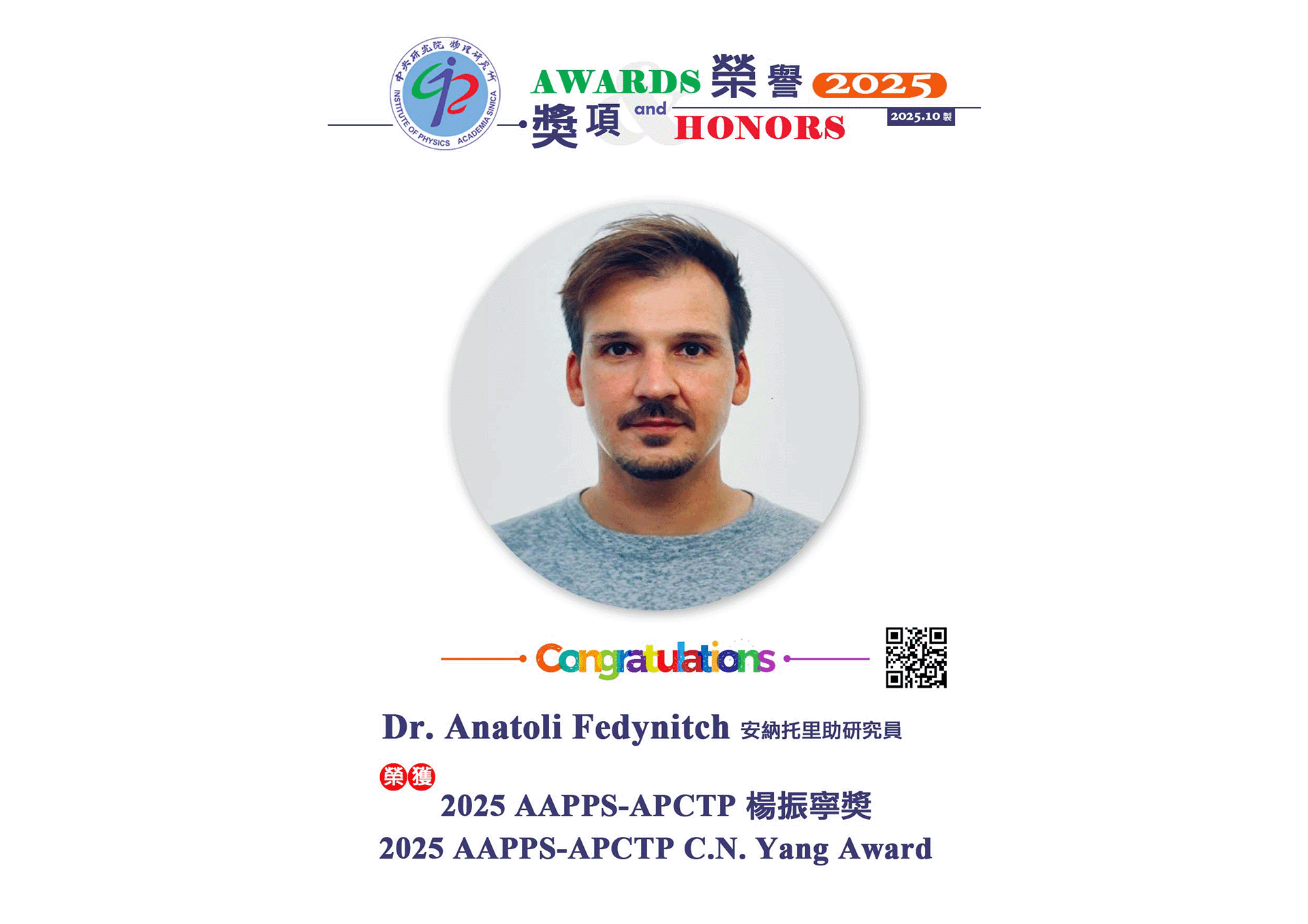 本所助研究員安納托里博士(Dr. Anatoli Fedynitch)榮獲2025年AAPPS-APCTP C.N. Yang Award(楊振寧獎)