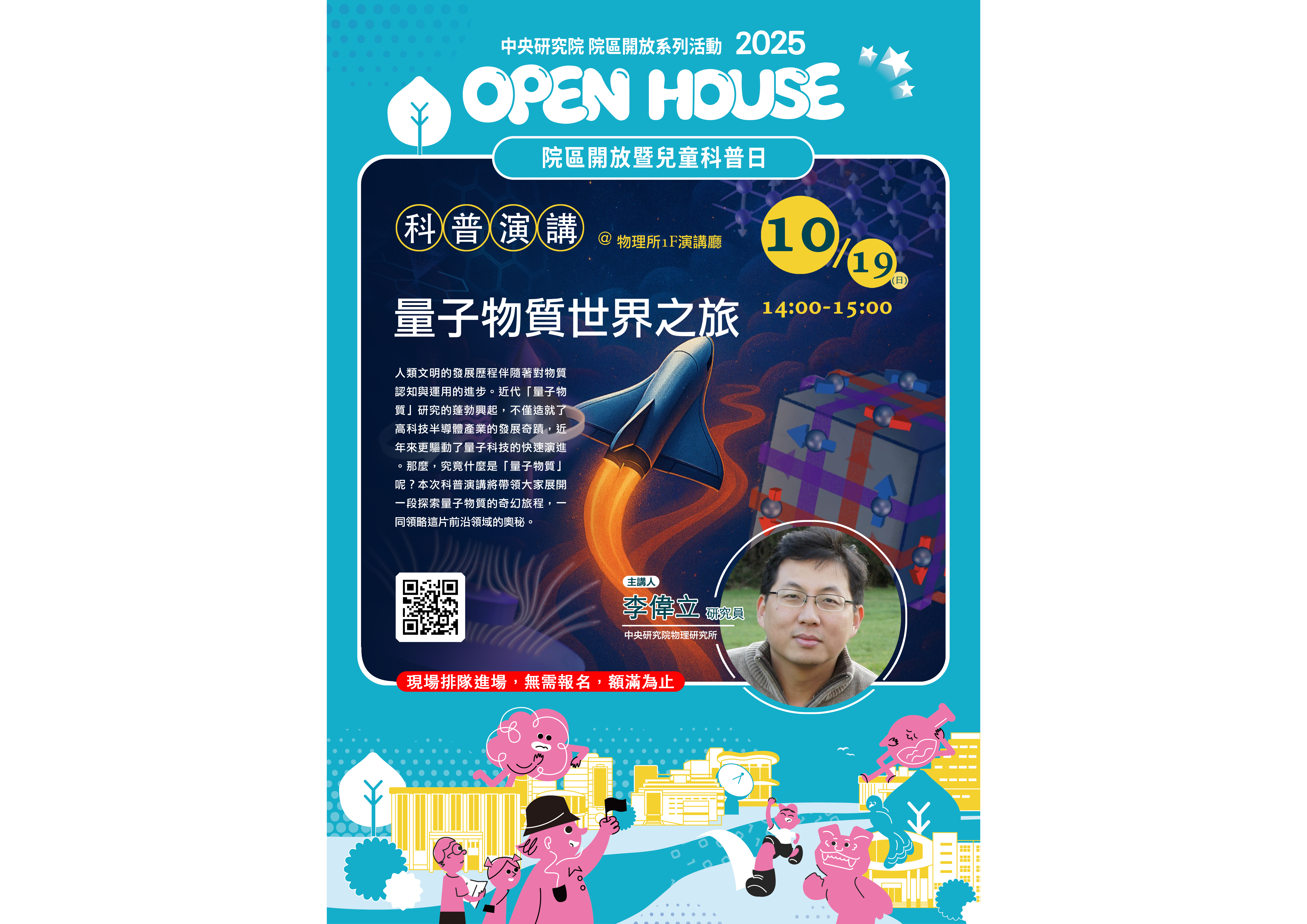 人類文明的發展歷程伴隨著對物質認知與運用的進步。近代「量子物質」研究的蓬勃興起,不僅造就了高科技半導體產業的發展奇蹟,近年來更驅動了量子科技的快速演進。那麼,究竟什麼是「量子物質」呢?本次科普演講將帶領大家展開一段探索量子物質的奇幻旅程,一同領略這片前沿領域的奧秘。