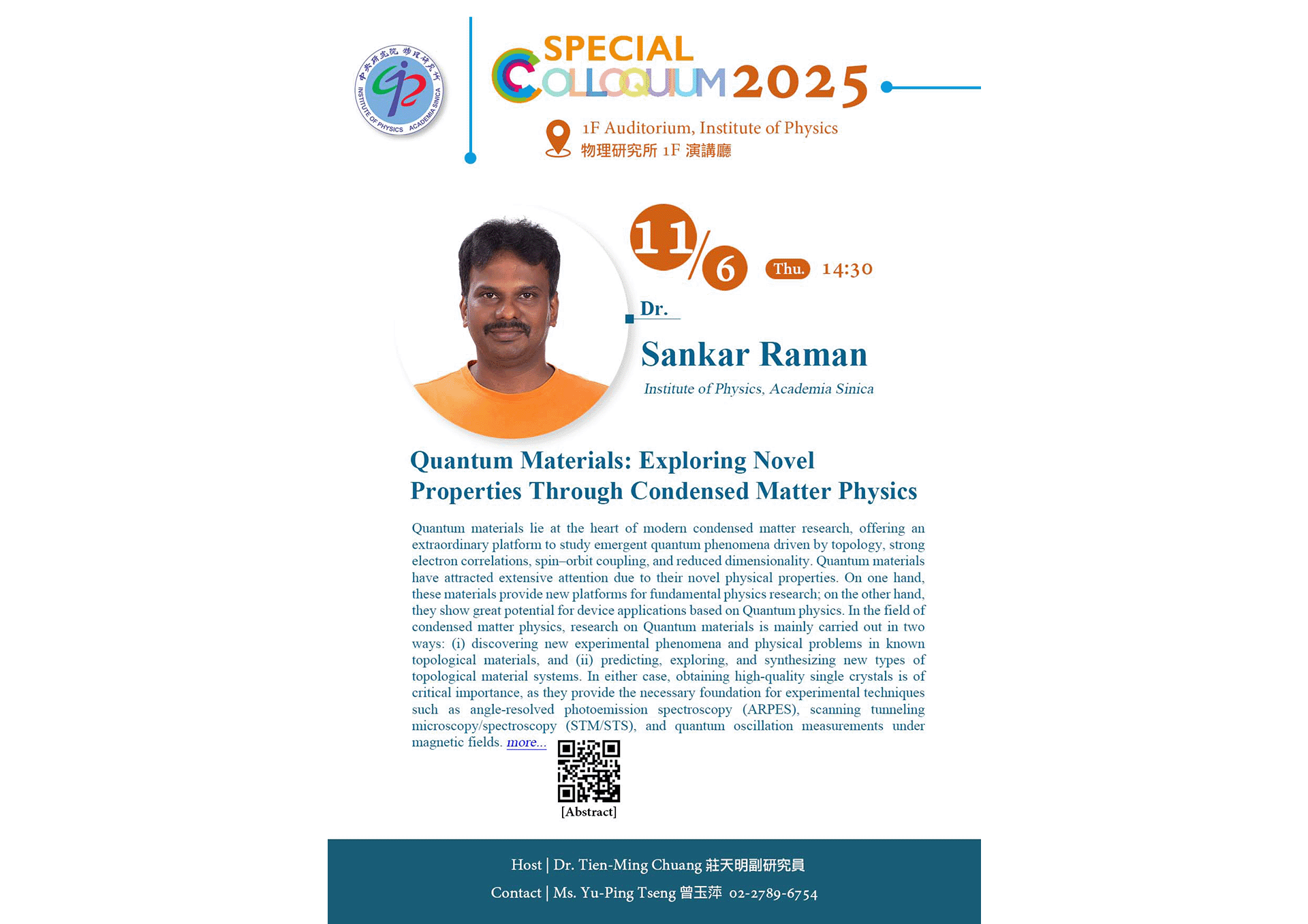 雷曼研究副技師 (中央研究院物理研究所) Dr. Sankar Raman (Institute of Physics, Academia Sinica)Abstract