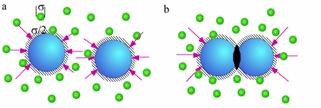 interaction)ªº¨Ó·½¡C¨t²Î¤¤Y¦³¤j¤p¨âºØ¤£¦Pªº²É¤l¡A¦b³oùاÚ̦Ҽ{¶ê²y¡C¨âªÌ¤§¶¡ªº§@¥Î¤O¦pµw²y§@¥Î¤O¤p²yª½®|¬° s¡A¤p²y§@¥¬®Ô¹B°Ê¡A¼²À»µÛ¤j²y¡A¬Û·í©ó¹ï¤j²y¬I©óº¯³zÀ£¡C±q¤j²y²y¤ß¦Ü¤j²y¥b®|¥[¤p²y¥b®|³o½d³ò¤º(±×½u°Ï¥[¤W¤j²y¥»¨)¡A¦]µw²y§@¥Î¤O¡A¤p²y²y¤ßµLªk¶i¤J¡A©Ò¥H¸Ó°ÏºÙ§@ªÅ¥F°Ï(depletion zone)¡A·í¤j²y¶ZÂ÷°÷»·(¹Ïa)¡A¤j²y©Ò¨ü¨ìªºº¯³zÀ£¬O¦U¤è±§¡¤Ã¡A¦ý·í¤j²y²y±¤§¶¡¶ZÂ÷¤p©ó¤p²yª½®|®É¡AªÅ¥F°Ï¶}©l«Å|¡A¤j²y¤§¶¡¤£®e³\¤p²yªº¦s¦b¡A¨âÃ䪺º¯³zÀ£¤j©ó¤¤¶¡¡A³y¦¨¨âÓ¤j²y¤¬¬Û§l¤Þ¡A³oÓ¦ì¯à¬Û·í©ó¤p²yªºº¯³zÀ£§@¥\¡A¦Ó¤p²y¯à¹B°ÊªºªÅ¶¡¼W¥[¤F¬Û«Å|ªºªÅ¥F°ÏªºªÅ¶¡(¹Ï b¶Â¦â°Ï°ì)[5]. ¥t¤@Ó¦Ò¼{³oÓ°ÝÃDªºÆ[ÂI¬Oª½±µ¦Ò¼{ a¡Ab ¨âºØ±¡§Îªºæi¡A¦b b ¹Ï¦]¬°¤p²y¥i¹B°ÊªºªÅ¶¡¤ñ a ¦h¡Aæi¤ñ¸û°ª¡C