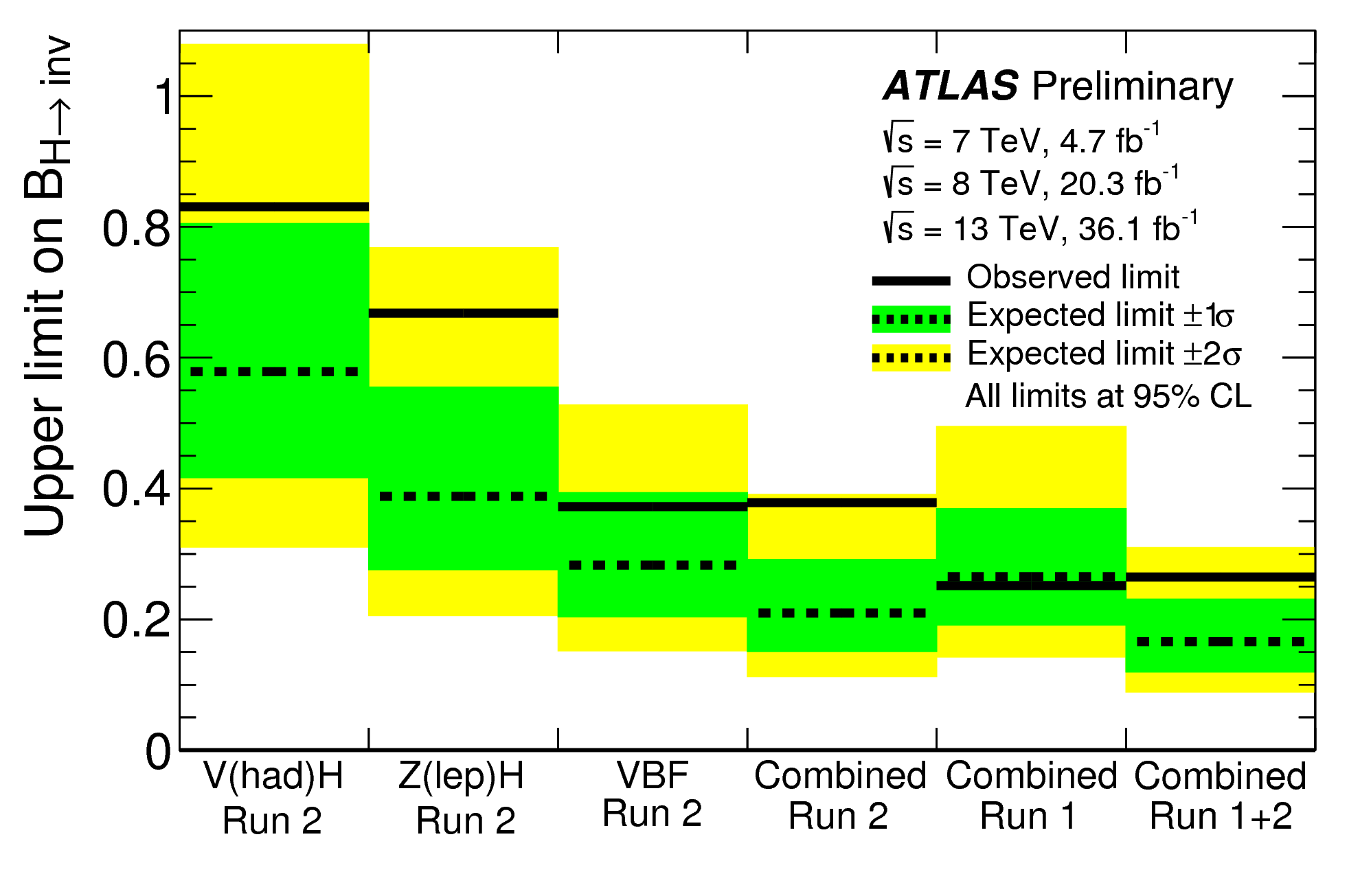The combined expected limit BR(H->inv) < 0.17 (+0.07 -0.05) is currently